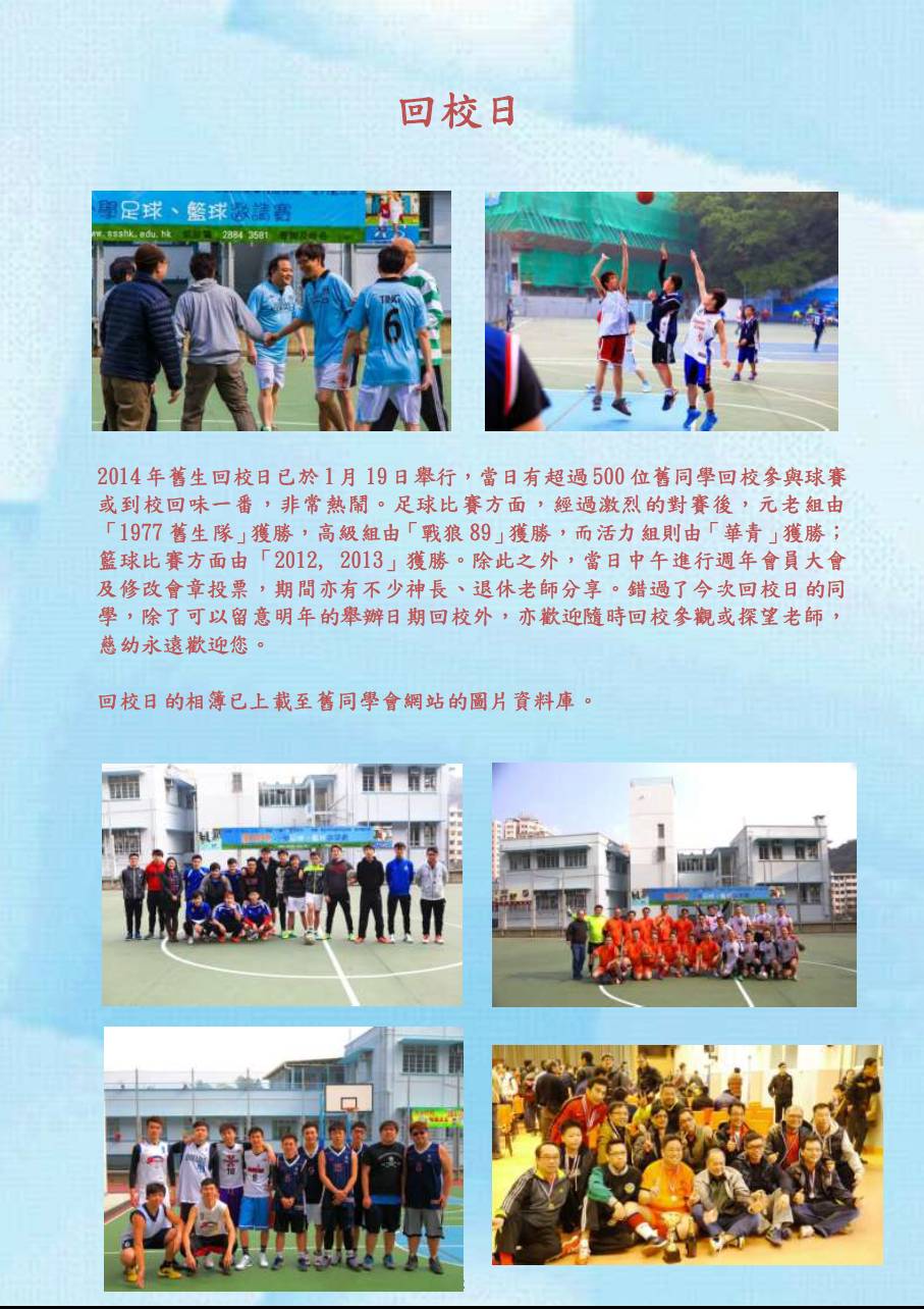 今 年的回校日,亦是會員大會的日子。今次會員大會除了報告會務,還有一個重要任務,就是要修改會章加入 選舉校友校董的條文。
